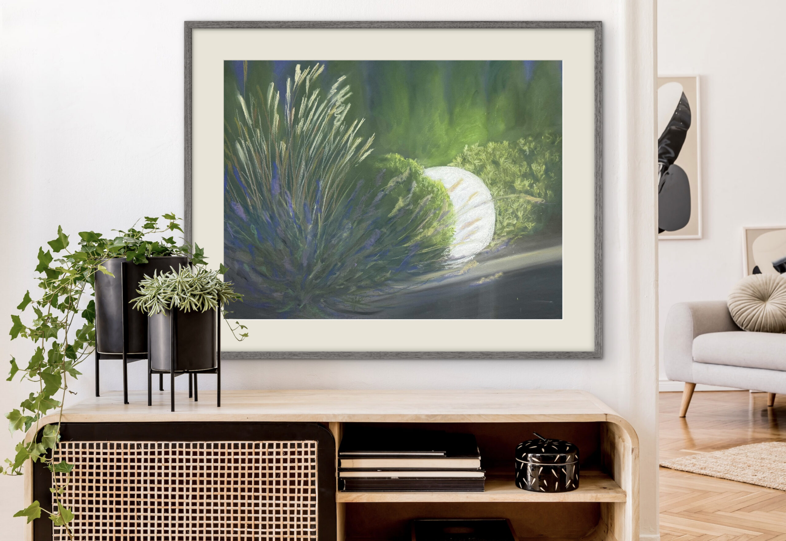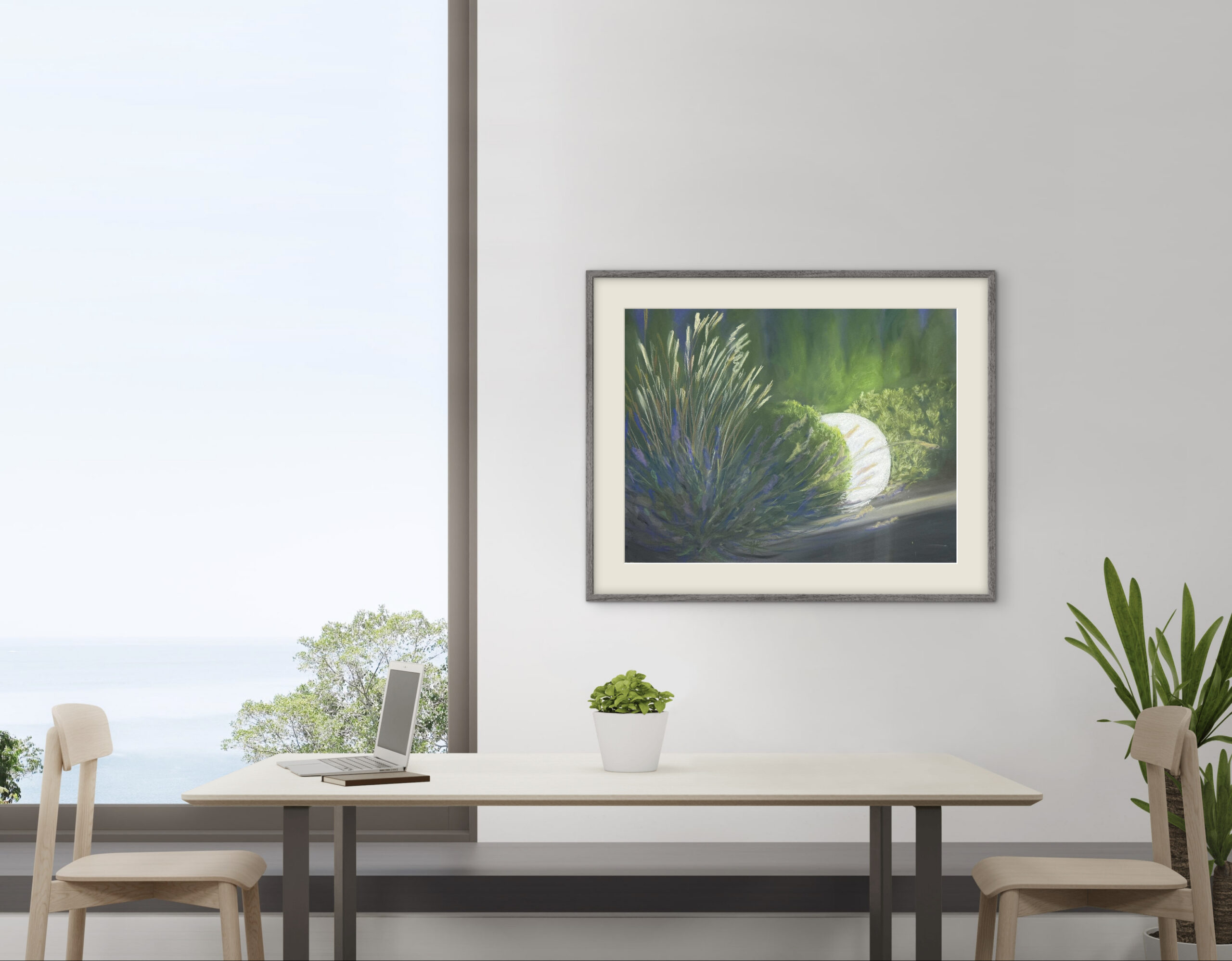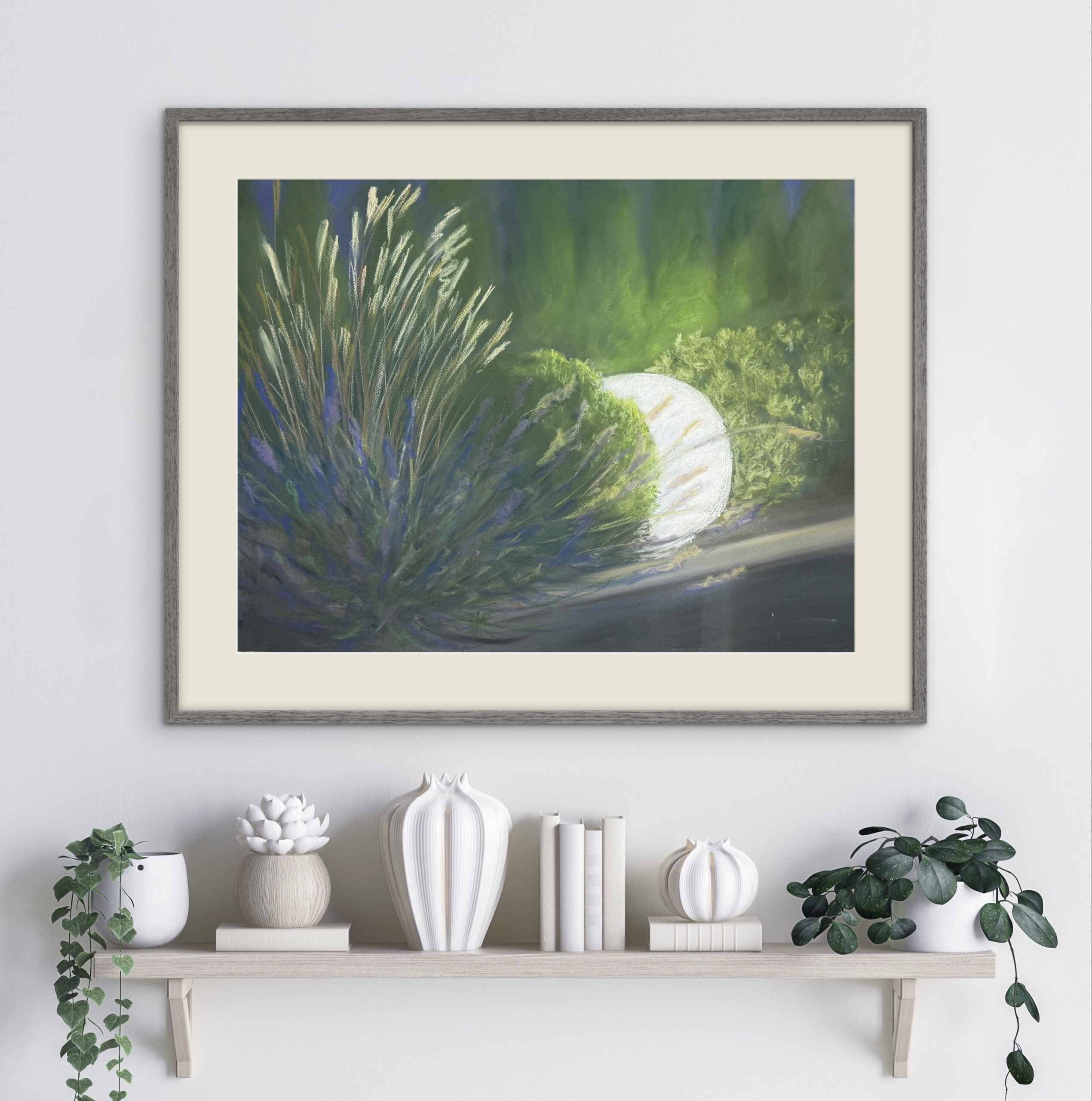 Kuiv- ja õlipastellmaal pastellipaberil. Maal on A2 mõõdus ja valmis 2025. aastal. Klaasitud 70% UV-kaitsega peegeldust vähendava kirka klaasiga, raamitud musta metallraamiga, sinine paspartuu valge lõikeäärega.